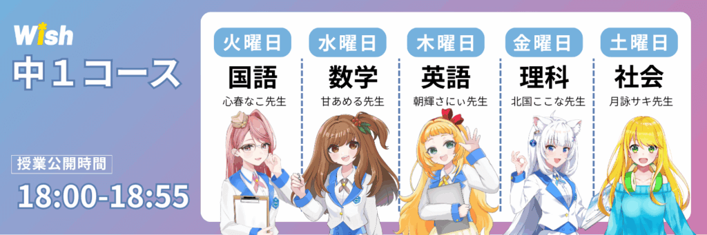 Wish中1コース/ 配信時間18:00-18:55