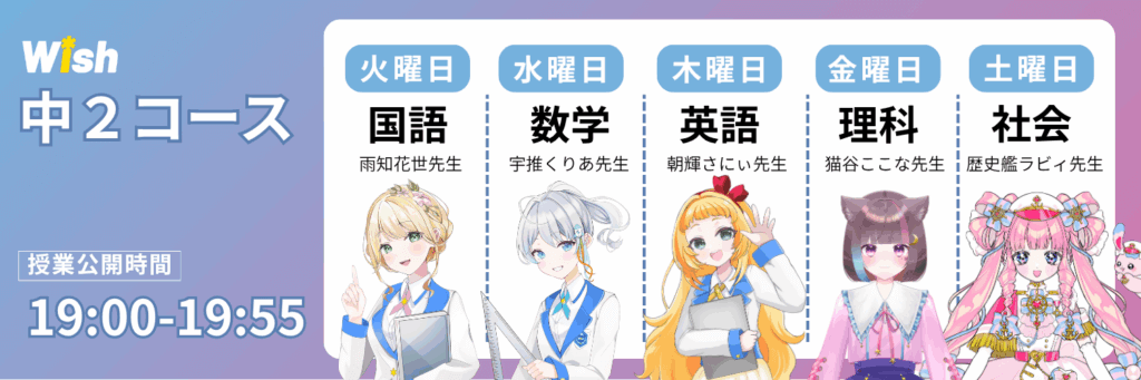Wish中2コース/ 配信時間19:00-19:55