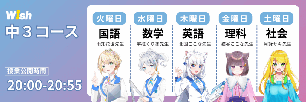 Wish中3コース/ 配信時間20:00-20:55
